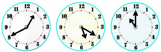 3) На модели часов установите различное время и определите его. Покажите это время, нарисовав стрелки.